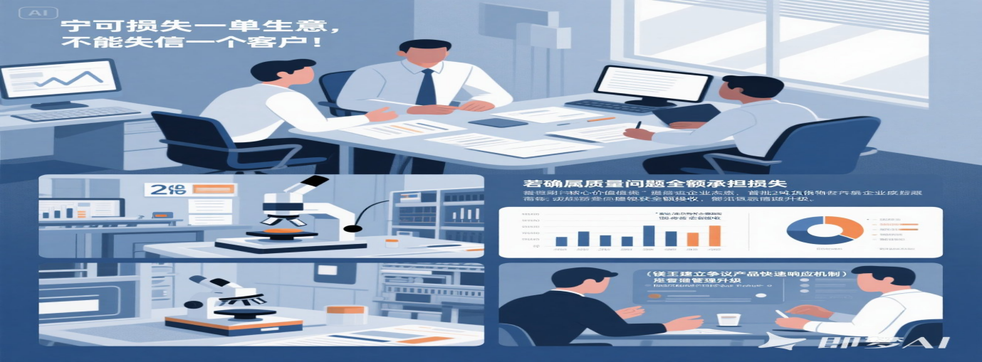 12月5日,鎂王公司召開了緊急會議。會議室里,氣氛凝重,大家都在討論著應對方案。有提出讓第三方檢測的,但這個方案耗時7天,很可能會錯過客戶的交期;也有建議先行補發合格品保障生產,同步送檢厘清責任的。就在大家爭論不休時,畢總一拍桌子,堅定地說:"寧可損失一單生意,不能失信一個客戶!我們選擇先行補發合格品,這是我們的誠信擔當。